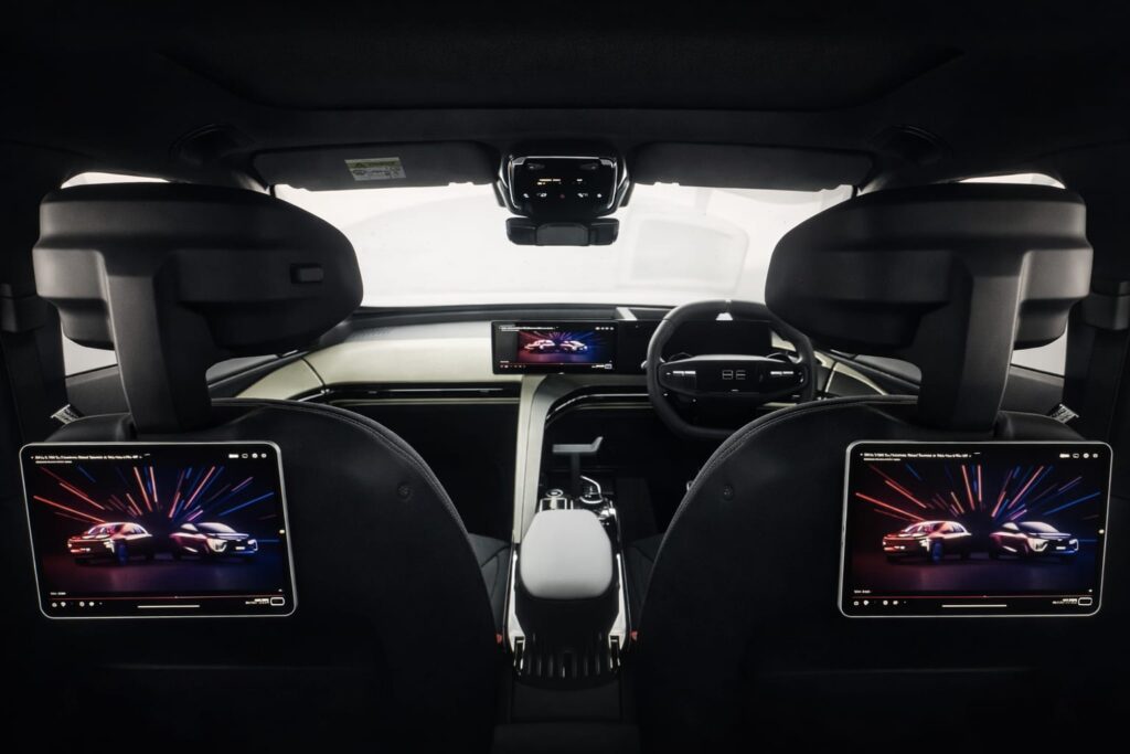 BE 6 ka interior clean, dual-tone aur soft-touch materials ke saath premium feel deta hai.